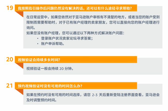 开始之前,中国大陆的卖家必须出示身份证件、营业执照以及在“录制面部视频 ”环节中拍摄的自拍照。在此过程中亚马逊不会向您提出任何现场问题。香港或台湾地区的卖家需出示身份证件和自拍照。