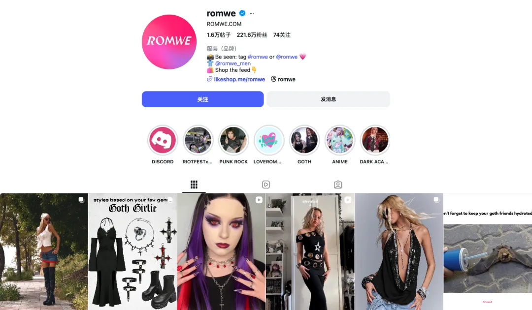基于这种用户洞察,ROMWE 在Instagram和TikTok上的内容视觉完全背离了传统服装品牌的“精致感”。