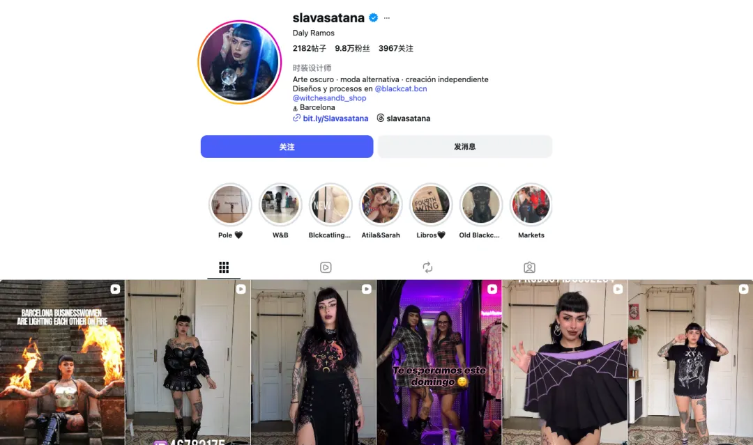例如Daly Ramos,这是一位base在巴塞罗那的热衷于暗黑风格的艺术家,她的整体形象属于亚文化群体中“天菜”级别。