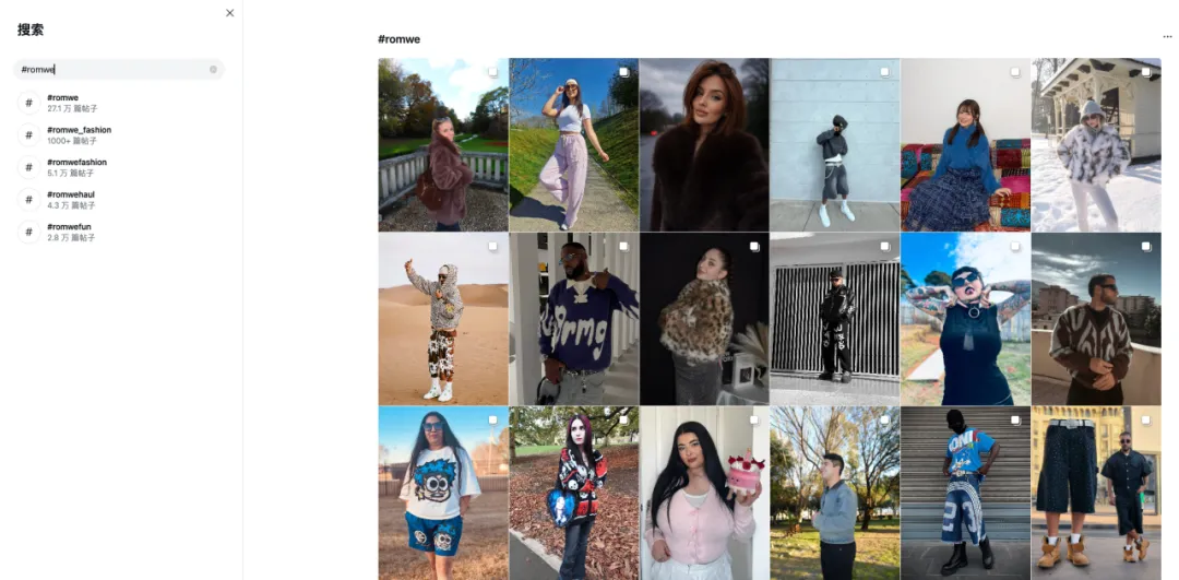 这套打法显然卓有成效,截止到目前为止,仅在Instagram上打上了#ROMWE标签的帖文数量就超过了21万条!