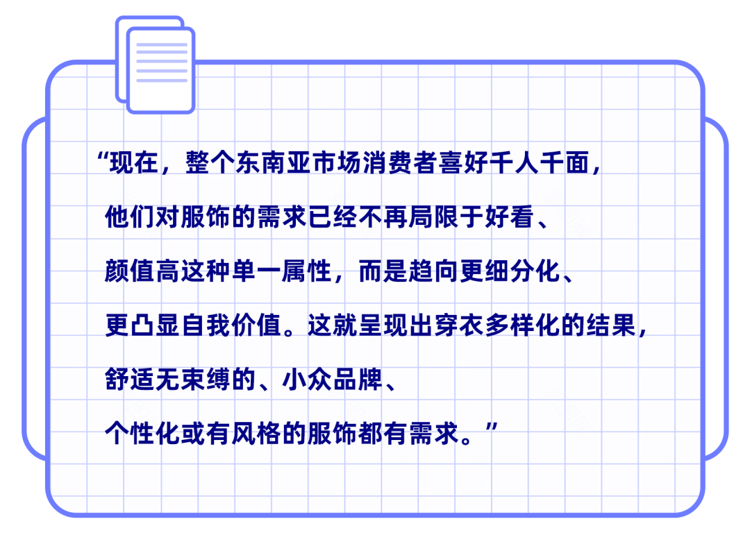 女装商家XIXI运营Lazada多年,在她的理解中,当下东南亚女装的消费主体正逐渐年轻化,18到24岁年龄段是迅速爆发的消费主力。同时,当地穿衣理念正在多元化,复古、辣妹风、甜美韩系、都市通勤成为热销的女装风格。