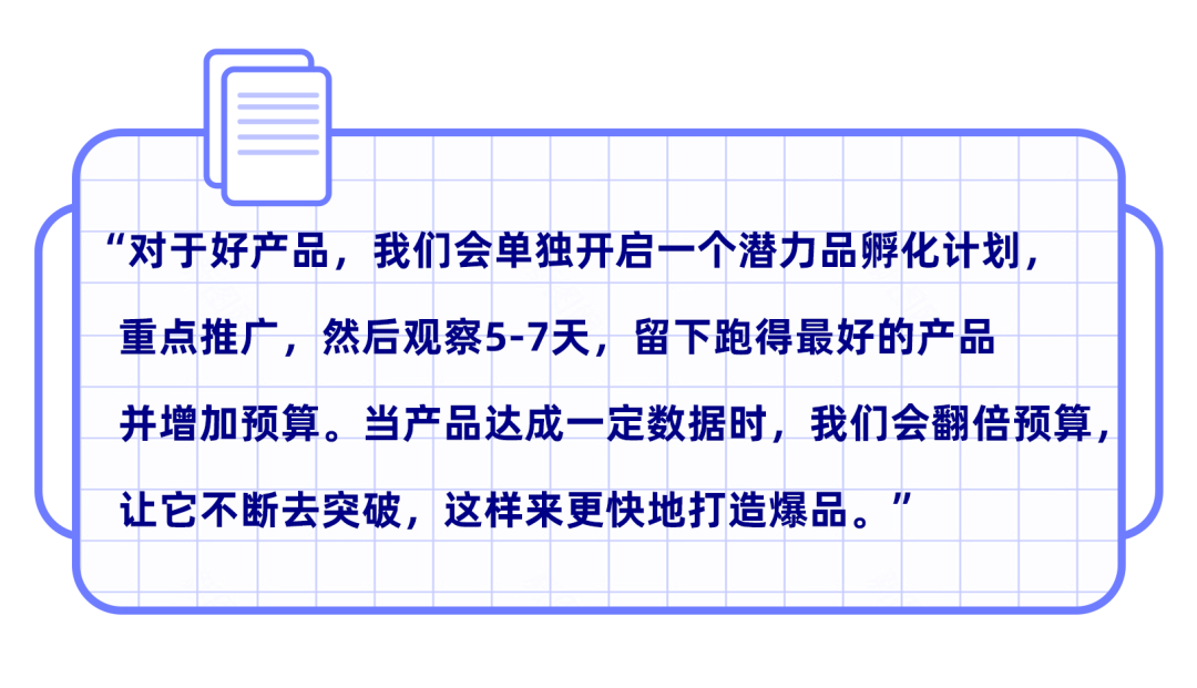 谈到关于广告投放的分享,XIXI表示在自己广告计划的日常运营中最常用的就是赛马机制来进行投放品优化。刚启动投放时,会先使用全自动计划,用平台大数据及流量来帮助选品。在全自动计划开启一段时间后,会将广告投放数据表现较好的产品拉出来,再单独开手动计划。对于整体广告账户,会以3-7天为监测周期,对表现较好的产品加大预算,数据不理想的则及时止损,如此进行产品迭代。可有效实现在ROI可控情况下进一步扩大流量获取能力。