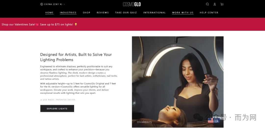 Cosmoglo曲面灯是一款专为美容行业打造的高品质照明产品。它由Cosmoglo, LLC精心设计制造,该公司由Mary Harcourt创立,专注于环形灯的研发与销售。这款曲面灯具有诸多特性,其可旋转的光环曲面设计独具匠心,能实现无阴影、全覆盖照明,为使用者提供清晰明亮的工作视野;高度可定制,最高能调至5英尺,可根据不同需求灵活设置,满足多样化的使用场景。