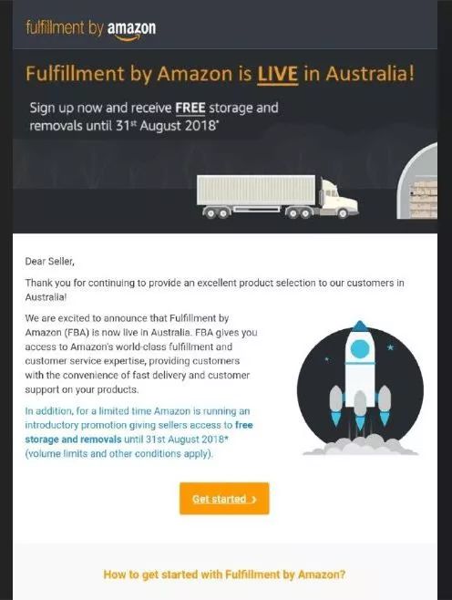 此外从亚马逊官方邮件中可看到,目前澳洲站FBA的优惠政策是:到2018年8月底,仓储费和移仓费全免。