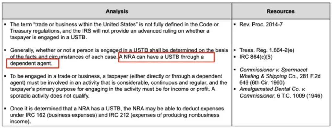 首先,美国IRS官网对ECI明确的定义:一个外国人或公司在美国开展了“贸易或业务”(USTB),其产生的全部收入都属于ECI,就需要向税务局申报所得税。