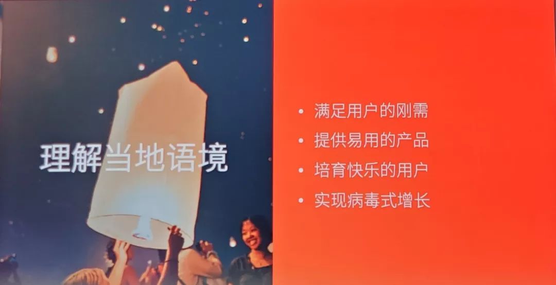 如何才能做到“理解当地语境”呢?满足用户的刚需、提供易用的产品、培育快乐的用户、实现病毒式增长的“四轮驱动”必不可少。今天的科技改变了人们的生活,消费者有更多的选择,更大的主导权, 如何不断创新,配合科技,掌握先机,建立可信可靠的产品以迎合世界变得更重要。