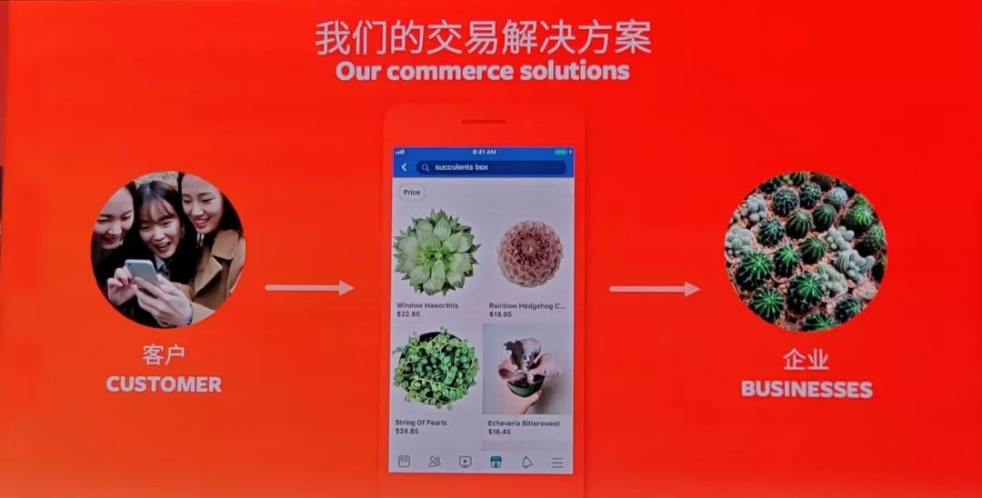 ·商业:随着科技的发展,极大的促进了购买规模和速度。使我们的交易解决方案也简易到客户——平台——企业,在不用离开Facebook的情况下就能实现实质性的突破。