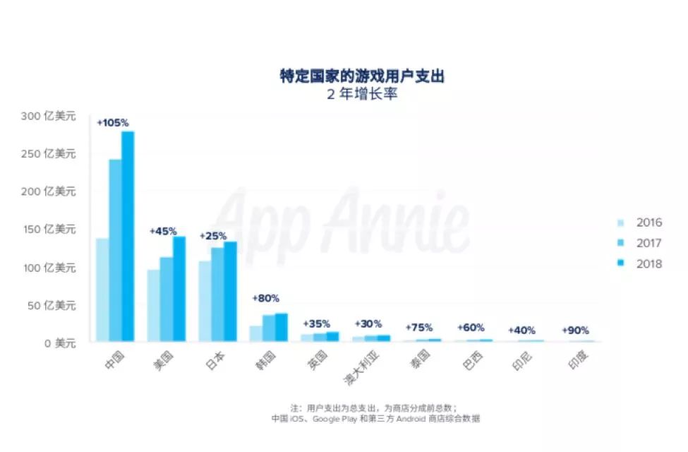 虽然中国的游戏开发者可能会考虑进军海外市场,但中国的移动游戏市场体量仍不容忽视,哪怕有新的审查流程出台。中国在移动游戏消费支出上遥遥领先,且在 2019 年,游戏开发者将继续想方设法打入中国市场。