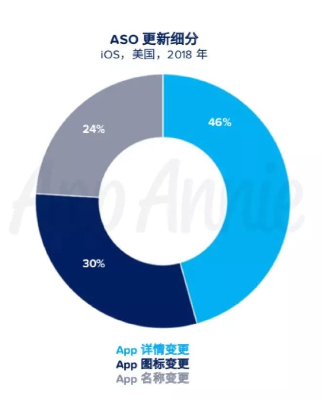 应用商店优化(ASO)依然是吸引用户直接下载应用的重要因素。2018年,App Annie 注意到 ASO 趋势中的一些细微变化,比如名称变更少了,但图标变更多了(2018 年图标变更为 30%,高于上年的 24%)。ASO 最重要的一方面是调整您的应用描述、提供关键词和有吸引力的视觉资产,比如截图和宣传片。2018 年,大约有 46% 的 iOS 应用更改了其描述。