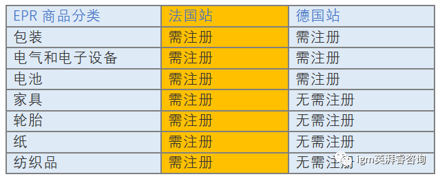 从2022年开始,法国规定7个类别的商品必须要符合EPR(生产者责任)的要求提供相关的注册号。