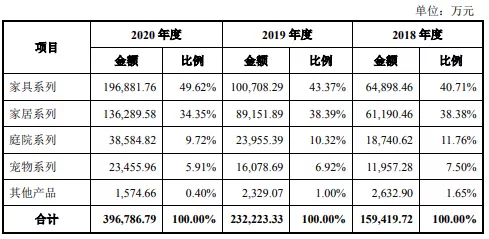 产品主要包括家具系列、家居系列、庭院系列、宠物系列以及其他产品。