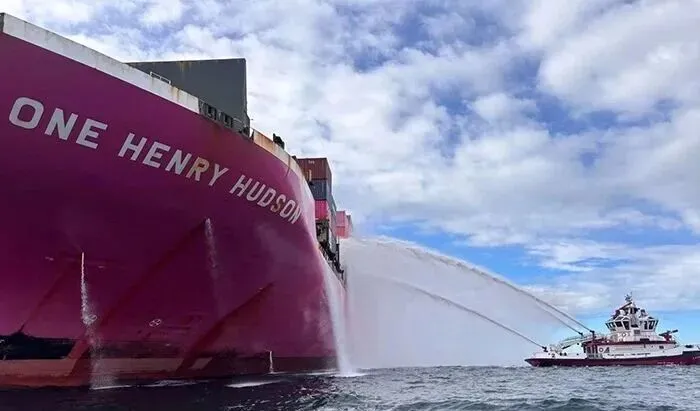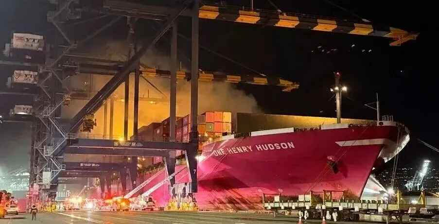 根据美国海岸警卫队(USCG)发布的声明称,火势已被控制在一个货舱内,“ONE Henry Hudson”轮已被拖至洛杉矶港(LA)和长滩港(LB)之间的锚地,靠近Angel灯塔,现场部署了1艘消防船,灭火工作仍在继续。