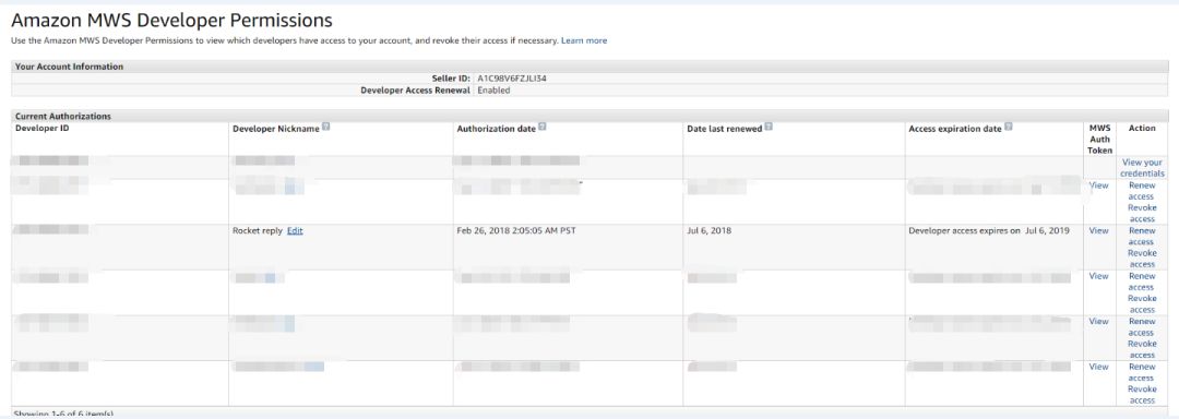 而子帐号授权方式,是通过第三方开发者账号进行授权(需要在亚马逊上以服务商主体注册开发者账号),是仅适用于网页应用和第三方开发商权限的授权字段,是在亚马逊的有效监控下进行的,会列明在MWS账号授权列表里,会有开发者注册的名称,这些授权是有访问权限及有效期的限制,过期后需要重新授权,虽然这种行为看起来比较繁琐,但是负责任、以客户安全为首要考虑的软件公司,就算麻烦,也只会让客户提供开发者权限的授权。而这些第三方软件的行为都是在亚马逊的合规范围内进行的,并且亚马逊可以有效的对这部分授权进行监控并管理。