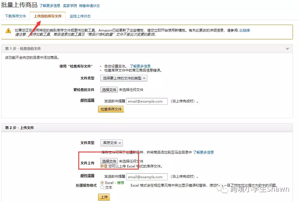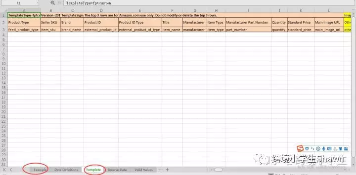 Template:模版。新手需要根据例子中的指示填写好每一个产品信息(产品的标题、五点描述,价格、UPC、图片链接等)这个模版的格式是固定的,卖家不能随意修改。