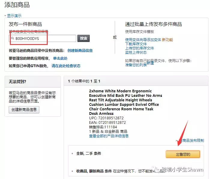 2. 将ASIN复制粘贴到上传新品界面搜索