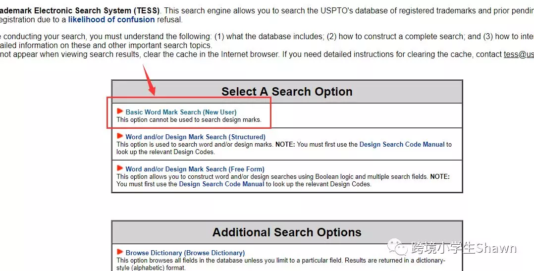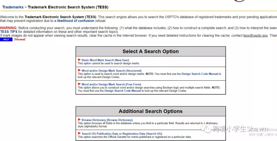 (1) 打开美国专利商标局网站:http://tess2.uspto.gov/