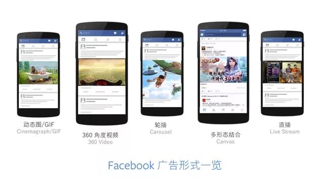 不要给自己借口,视频很难做很贵什么的。你想想,素材效果好,广告评分高,用户获取成本自然下降,最终是有赚的。反正视频是大趋势,跟不上就落后啦。你可以从最基本的动态画面开始做,以现有的静态图挑选少量重点,加入动态突出画面感;另外一种是直接演示游戏玩法,或者以网红直播方式介绍游戏玩法跟特点。如果想达到品牌效果,可以加入游戏和发行商的名称;使用一贯的素材风格和颜色,让用户记住你。由于市场不断会有新游戏推出,长远来说,从今天开始建立你的品牌,会带来巨大价值。其他Facebook广告形式包括动态图GIF,360视角视频,轮播,Canvas全屏广告等等,每一种都能够给用户带来非常好的体验。