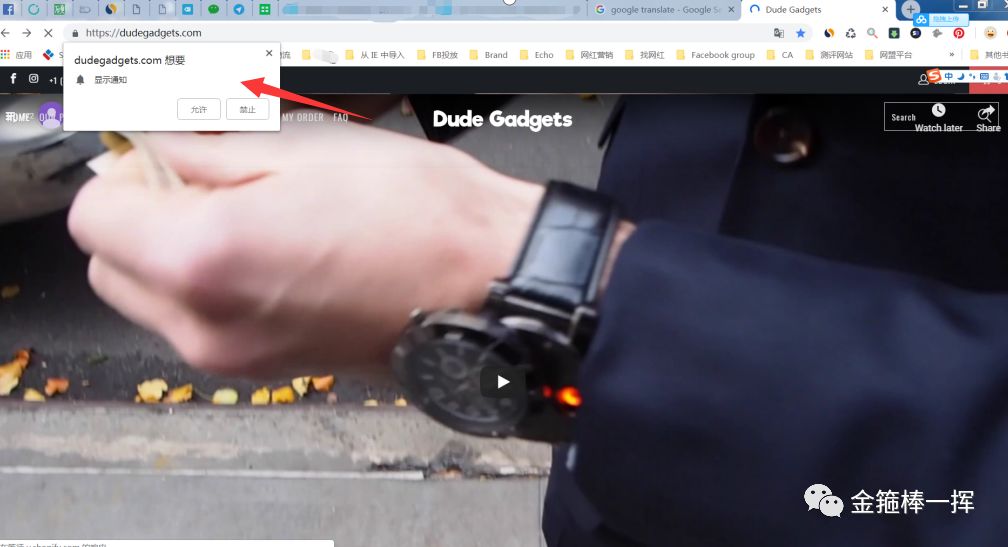 1、访问网站时,有些网站会弹出一个按钮,询问是否要订阅推送通知。如果客户点击“允许”,那么你就可以通过推送通知对客户进行再营销。