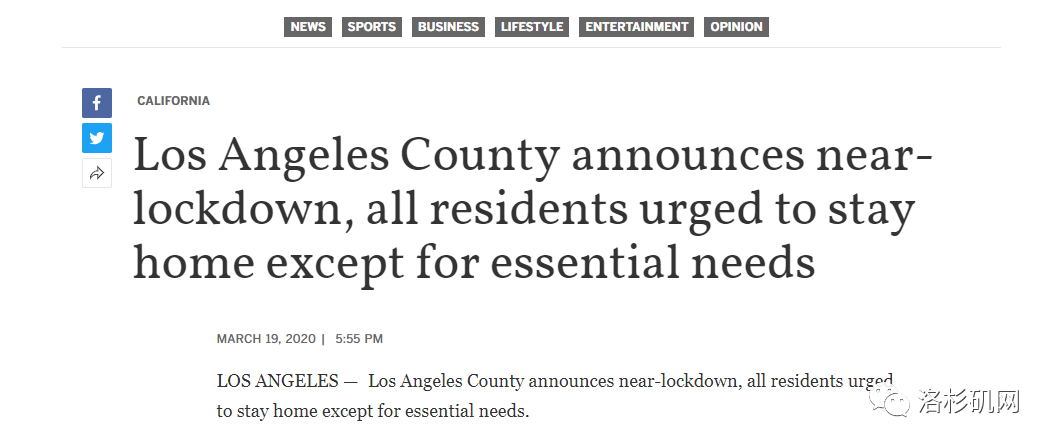 洛杉矶宣布封城!昨晚11点59分正式启动!整个加州都封了!