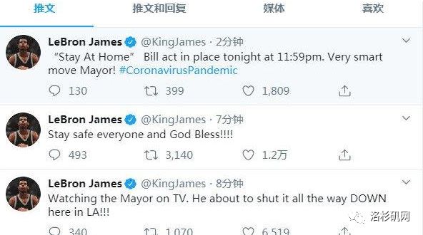 詹姆斯发推:大家都要注意安全 洛杉矶要封城了