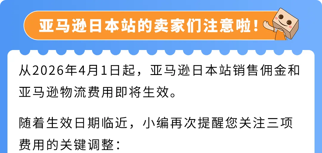 4/1即将生效!2026亚马逊日本站销售佣金及FBA费用变更