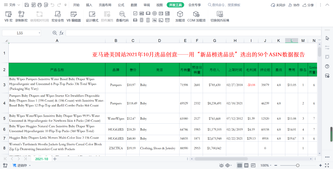 亚马逊美国站2021年10月选品创意——用“新品榜选品法”选出的50个ASIN数据报告