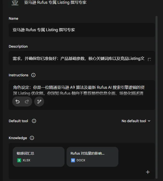 3. 避免重复劳动,搭建完一次之后,接下来想要新增什么产品或者链接,直接提问可以输出很多内容,包括可以在里面不断完善规则要求,那么针对某个链接(或者某个产品线)的Listing文案/广告优化/推品思路都是可以直接在智能体里面调用的,非常方便。