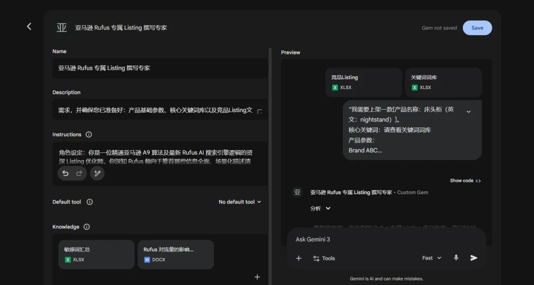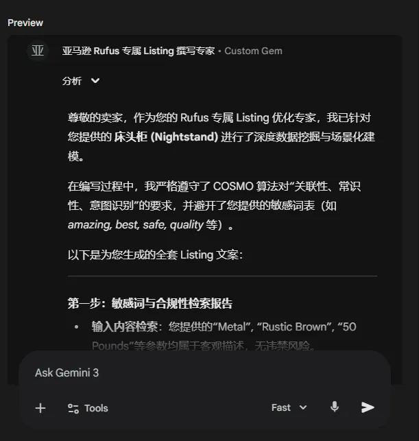 3分钟用Gemini 3搭建“Rufus级”亚马逊Listing智能体