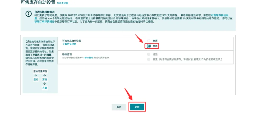 适合对库存有其他促销规划的卖家。直接选择禁用并保存。
