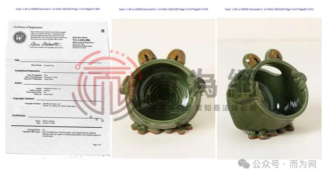 原告MudWorks Pottery LLC是一家来自美国宾夕法尼亚州的陶艺工作室,以其精湛的手工技艺和独特的设计理念而闻名。旗下Acoustic Frog青蛙扩音器采用MudWorks Pottery LLC精选的陶土材料,经过手工浸渍处理,确保每一件作品都独一无二。不仅延续了工作室一贯的高品质手工制作传统,更巧妙地将艺术与科技完美融合,成为家居装饰与实用功能的完美结合。