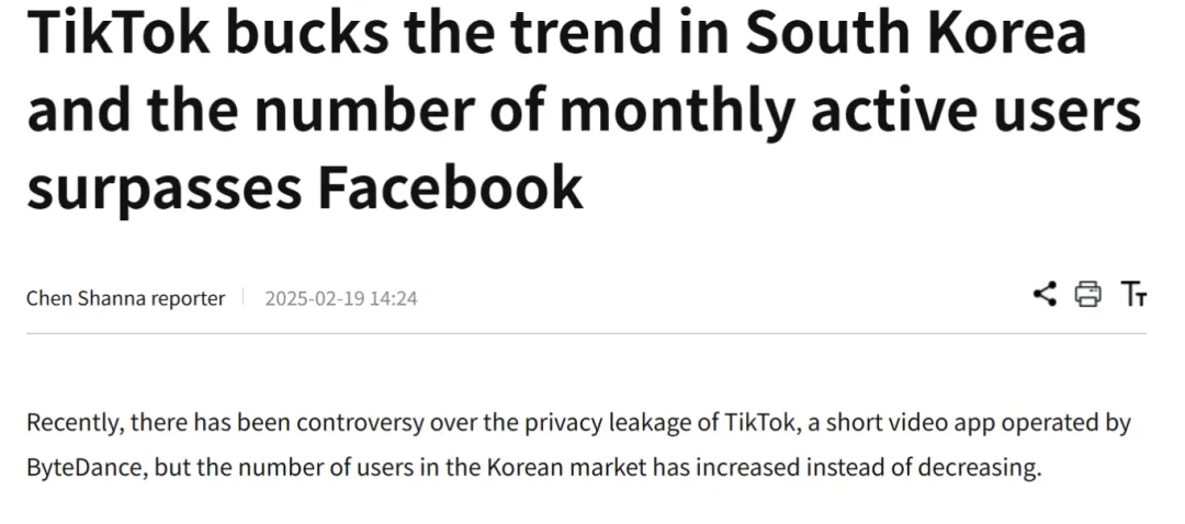 (韩国TikTok用户规模已接近970万人,月活跃用户数量超越Facebook)