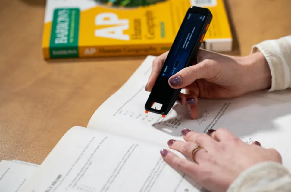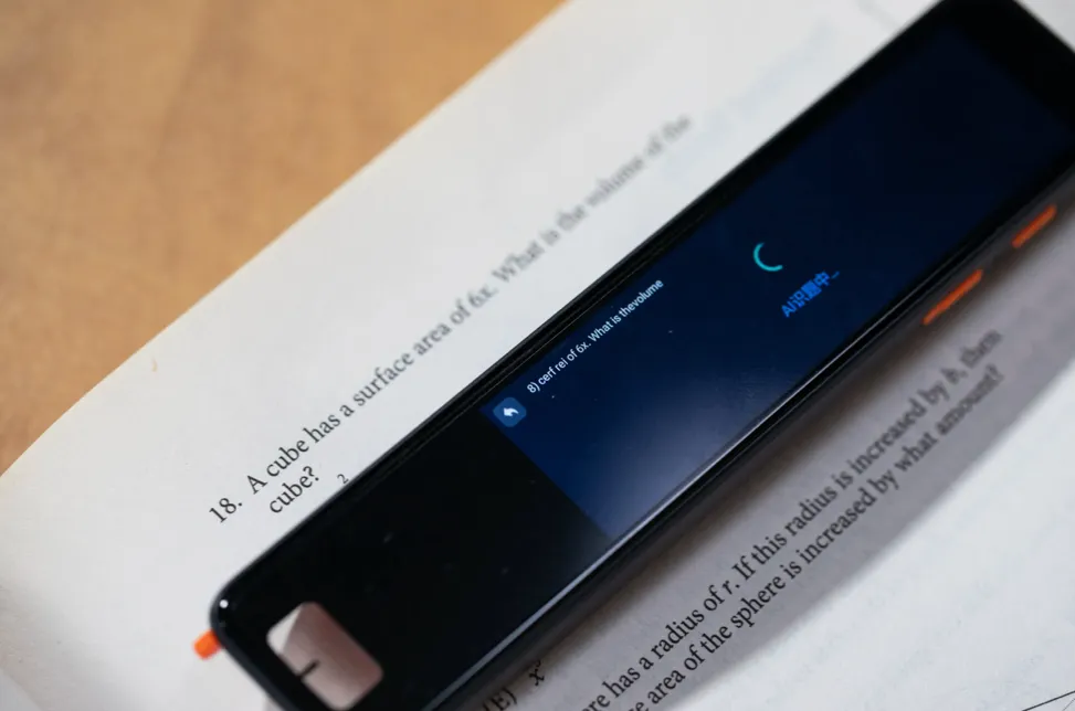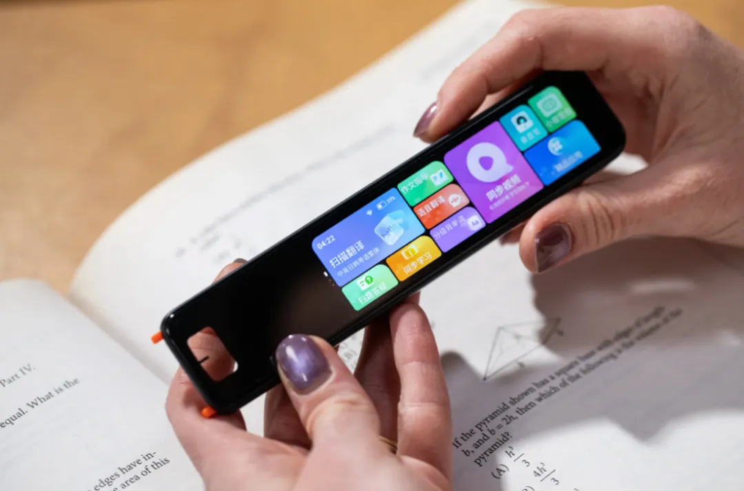 视频中的设备通常被称为“AI Smart Pen” 或 “ChatGPT Pen”,造型上类似国内用户熟悉的词典笔,透明部分的扫描头负责识别纸面文本,中间为彩色触控屏,侧面按键便于快速操作。