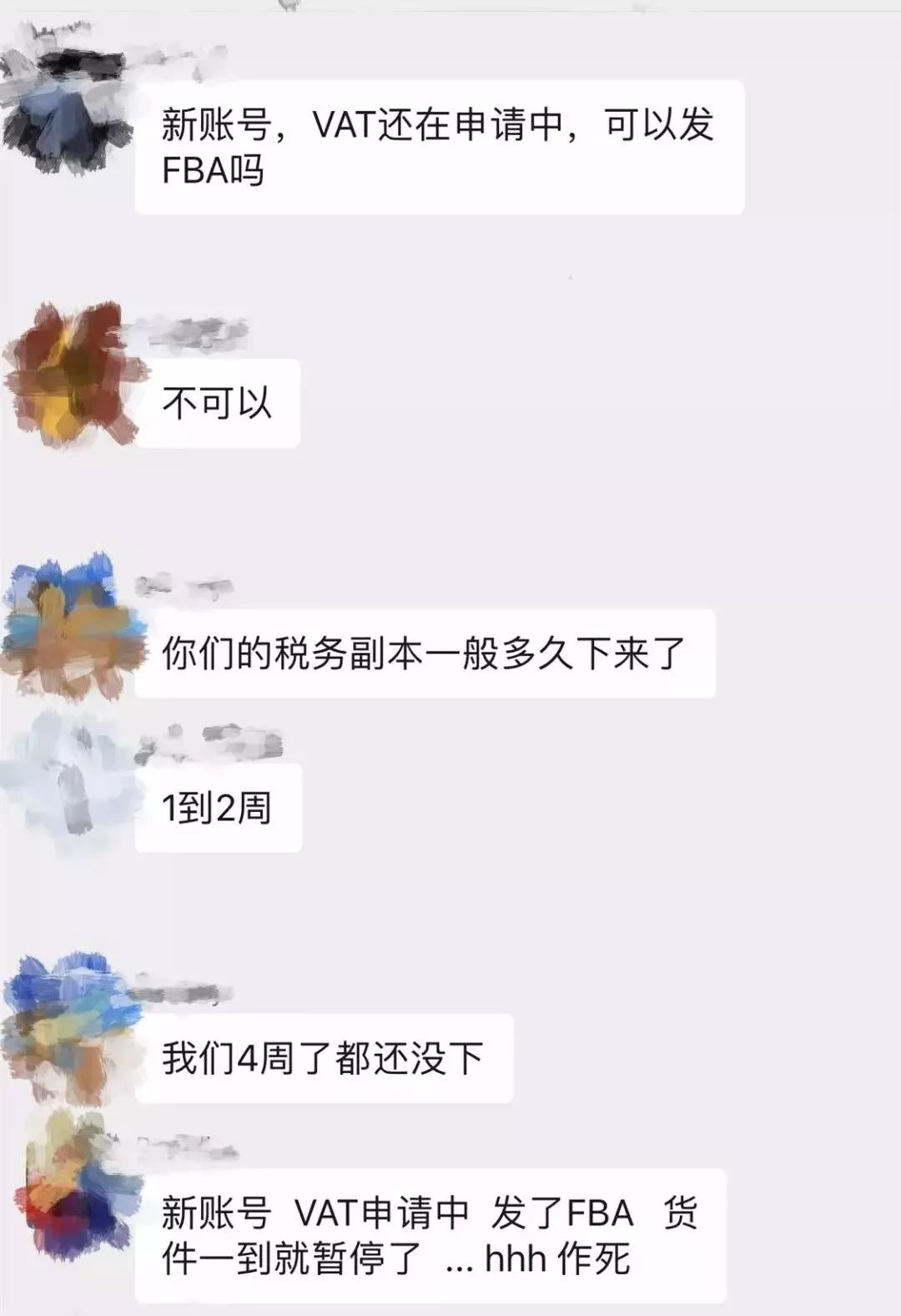 我们还需要提醒广大卖家,VAT正处于申请状态时,最好不要发FBA。一位卖家就因为违背了这个规定,发的货物刚到账号就被暂停了。