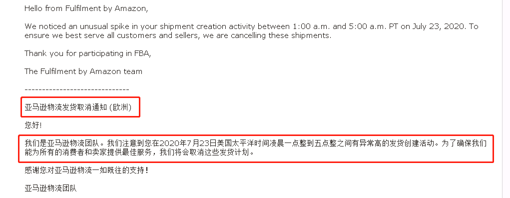 同时为了防止漏网之鱼,还把大部分卖家事先创建的备用发货计划统统取消了。