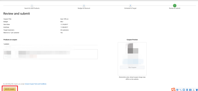 目前亚马逊前台展示的所有Coupons产品都是FBA产品,我们设置完成后需要4天才能显示在亚马逊页面。