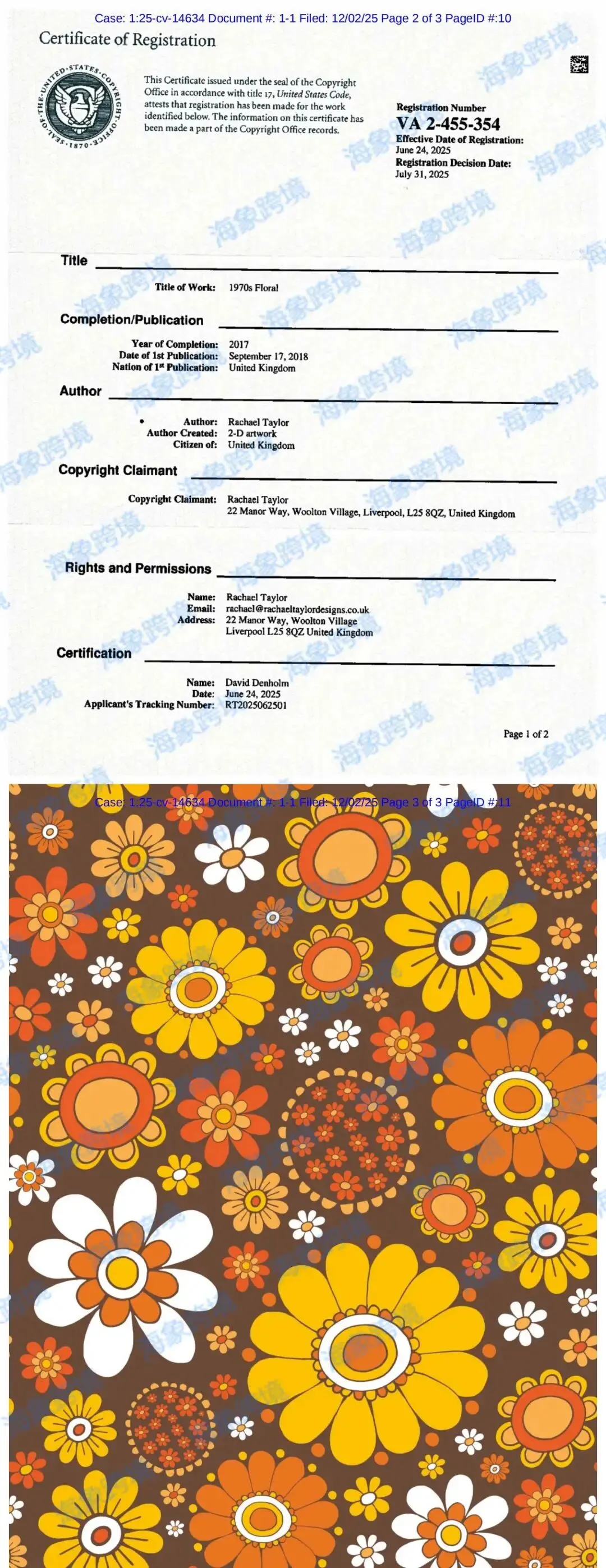 原告 Rachael Taylor 是一位创意总监、作家和导师,同时也是一位设计工作者。原告擅长创作印花和图案。