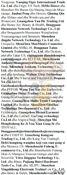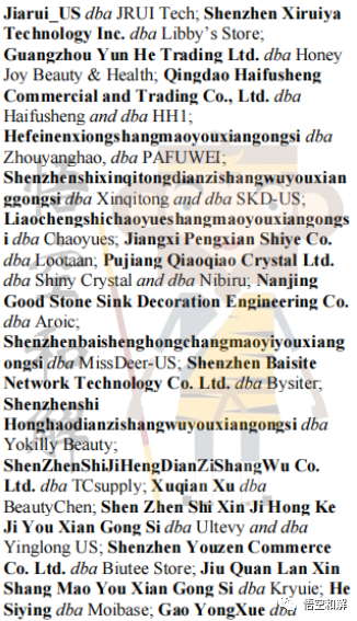 下图均为律所公开的相关文件所示侵权产品以及被告店铺的名字: