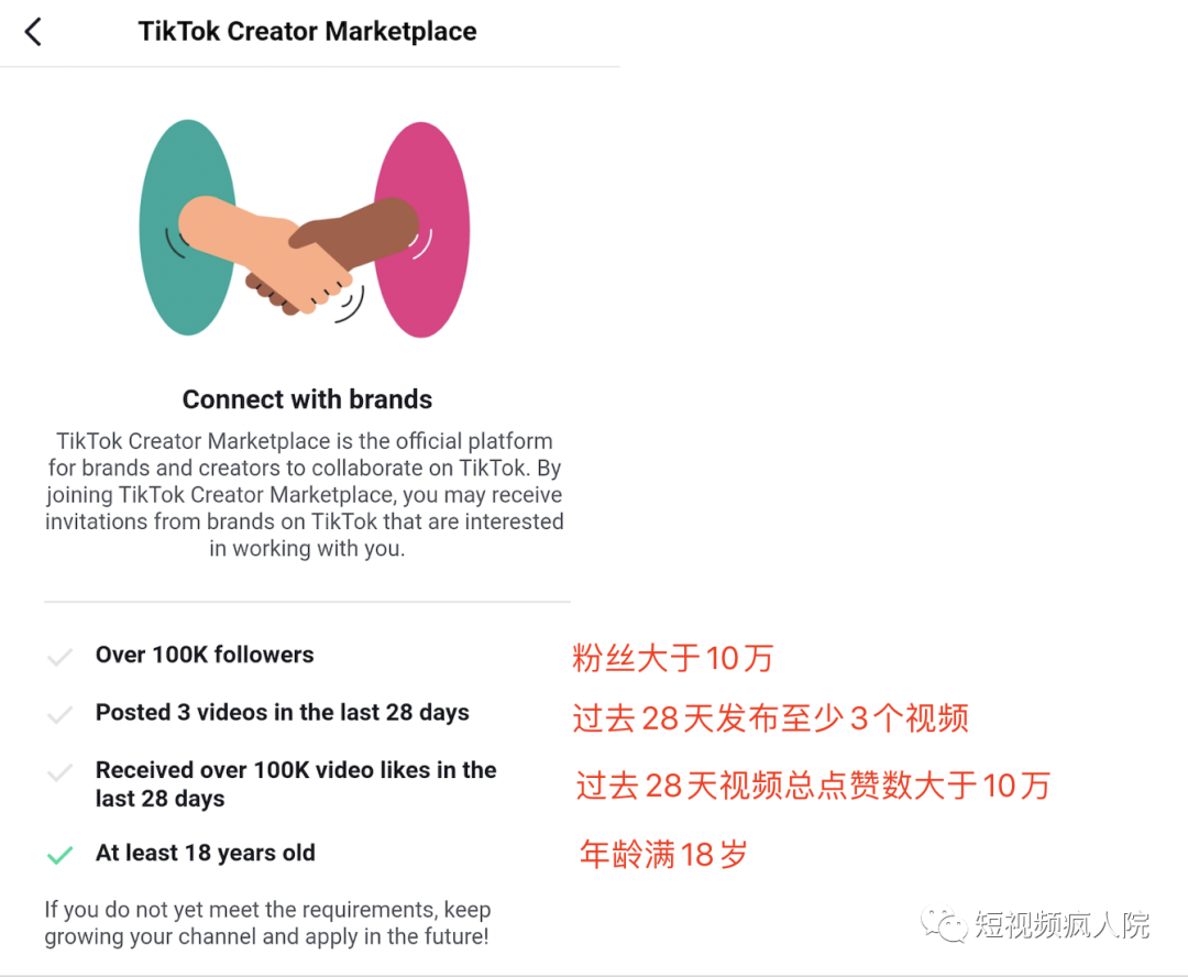 关于加入创作者市场的要求有如下4点,其中新手要避免的坑是注册年龄,请务必选择18岁以上!不少疯人院学员数十万粉账号,就因为当时年龄没选好,哭晕在角落里。