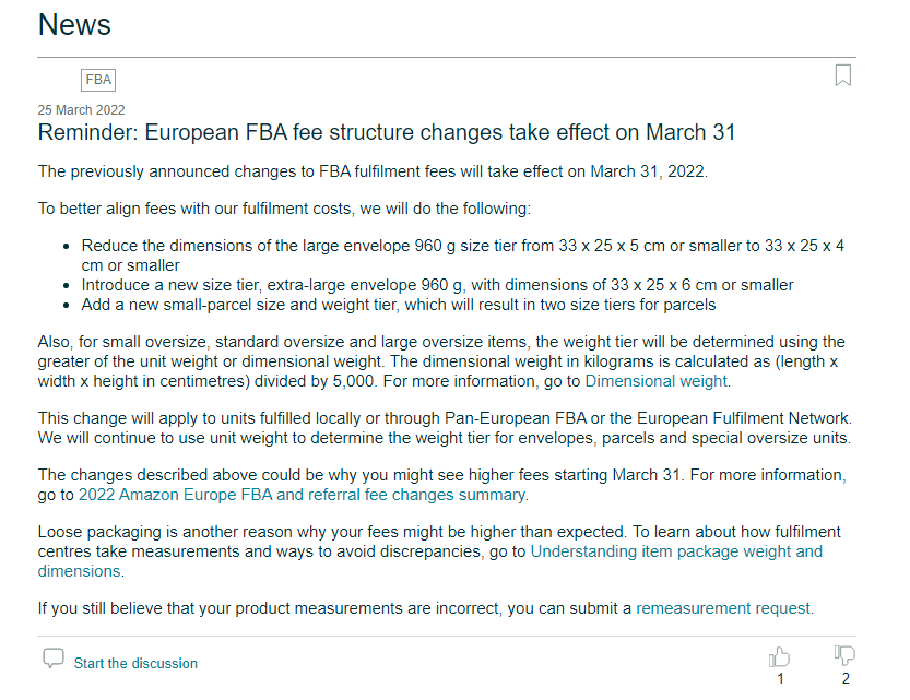 近期亚马逊欧洲站发布了公告,提醒卖家FBA尾程配送费即将在4月发生重要调整,不仅有多项费用提升,而且还引入了体积重计费规则!