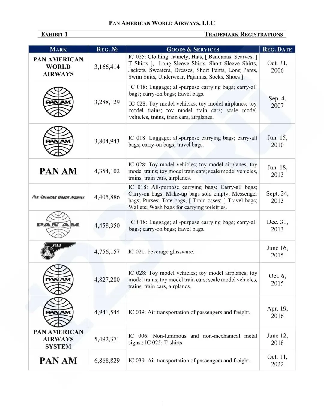 以下商标的服务范围包括服装、箱包产品、玩具、饮料玻璃器皿、航空运输服务以及非机械/非发光的金属标识