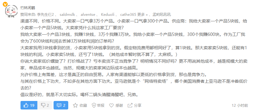 是真内卷吗?你觉得的低价螺旋,有没有想过这个价格,别人还有30%毛利!!大家可以先看下这张图,我觉得这位网友说得还是有一定道理的