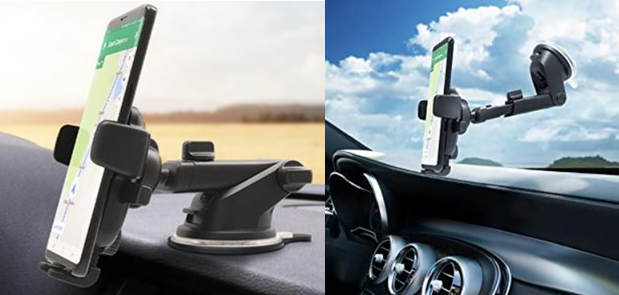 如果是车内空调出风口不是百叶窗型的,则要挑选其他类型的产品,像这一款手机支架是靠吸盘固定,也是一款躺赚级别的老产品,累积评论1.3万,评分4星,售价$24.95。价格较高,产品也更多功能,比如伸展臂可以从10cm延长到16.5cm,轴承可以活动角度高达225°。
