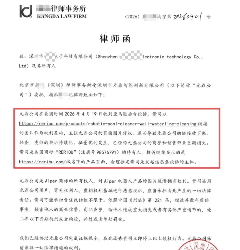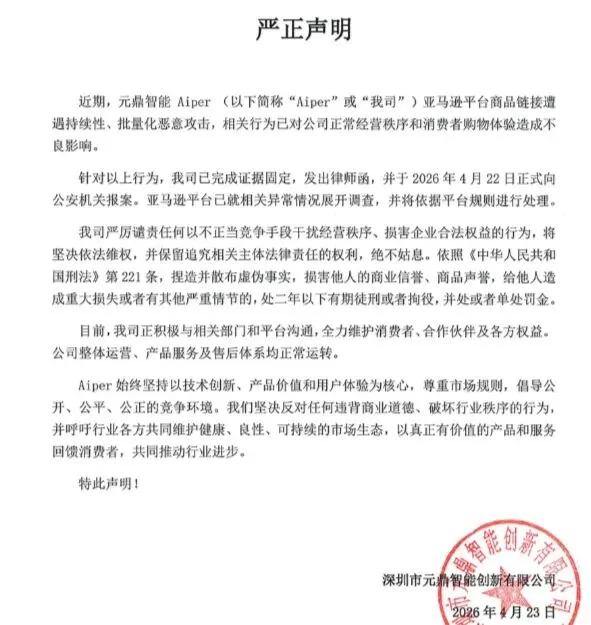 4月23日,泳池机器人大卖深圳市元鼎智能公司发声明称其亚马逊平台商品链接遭遇持续性、批量化的恶意攻击,对公司的运营造成严重影响!