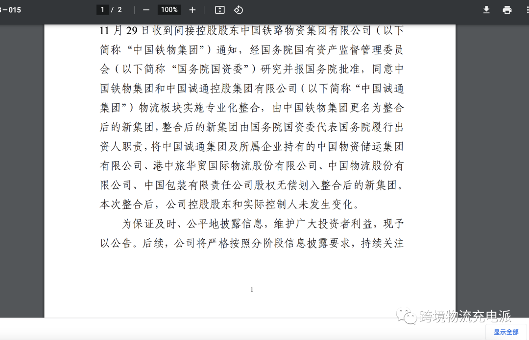 央企物流巨无霸呼之欲出,中国铁物和中国诚通将进行整合 | 并购佳成后,华贸三季度跨境电商物流营收10.60亿元,同比增长336%
