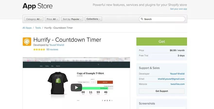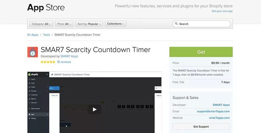 Smar7(https://apps.shopify.com/smar7-scarcity-timer)应用程序是一个倒计时应用程序,它通知客户销售何时结束。当顾客看到计时器在动时,就会产生购买冲动。