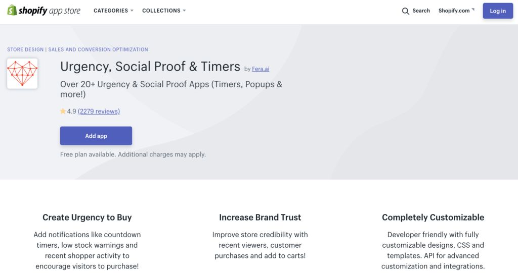 Urgency, Social Proof, and Timer是一个创造稀缺感的应用程序。它向客户显示有多少客户同时在查看一个产品,从而显示您的商店有多受欢迎。当顾客看到到他们正在看的产品很受欢迎时,这款应用程序还可以刺激他们购买。