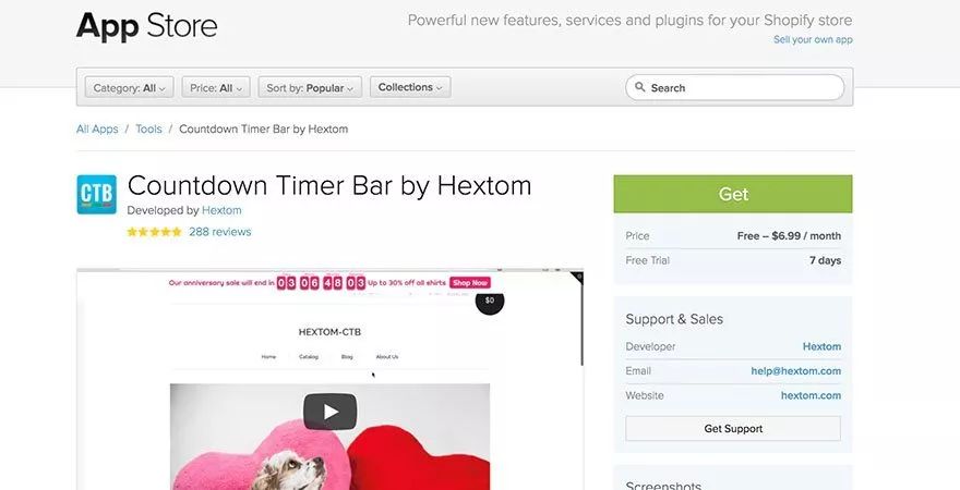 Hextom(https://apps.shopify.com/event-promotion-bar)有一个倒计时条,它会出现在网站顶部,通知客户销售的产品还有多久结束。如果您在全店范围内销售,这可以成为帮助营造紧迫感的有效工具。