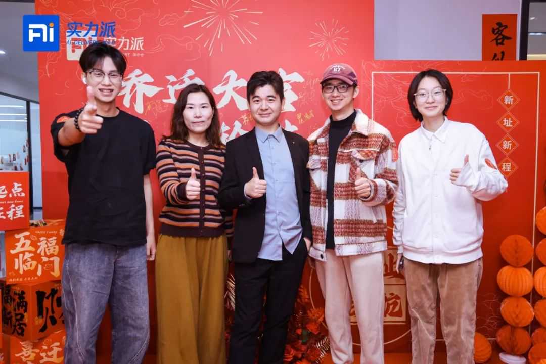 在接待区,一座大蛋糕和一排精致的纸杯蛋糕整齐排列,蛋糕上的“乔迁大吉”字样,承载着公司全体员工对未来的期许与祝福。