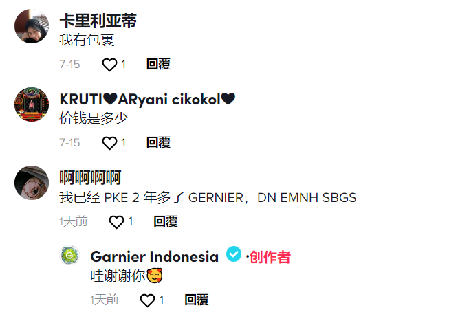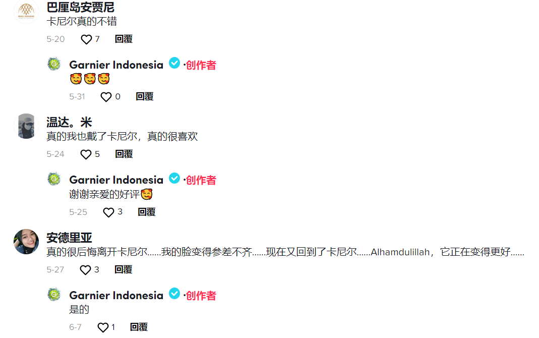 卡尼尔品牌无论是合作的达人,还是视频内容的拍摄者,直播间的主播,还是产品的功效,都已经做到了印尼本土化,所以想要快速的在印尼,或者其他地区立足,本土化运营尤为重要。