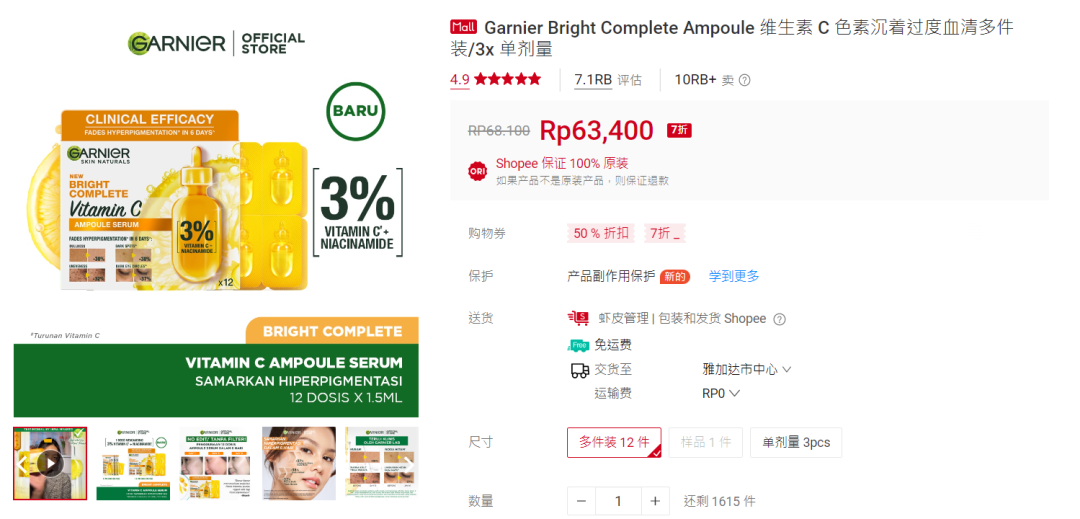 除了独立站售卖产品外,卡尼尔在印尼有多个分销渠道。比如shopee,lazada等等。